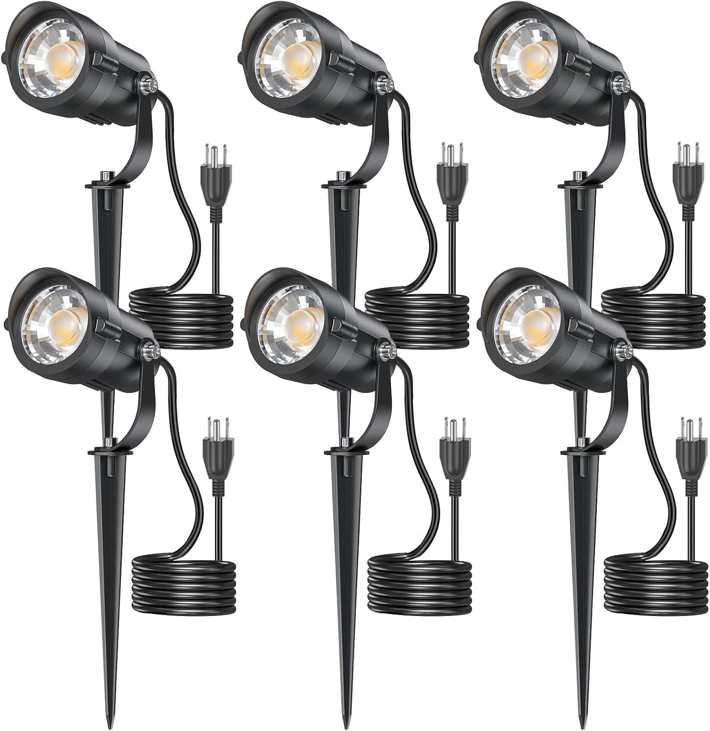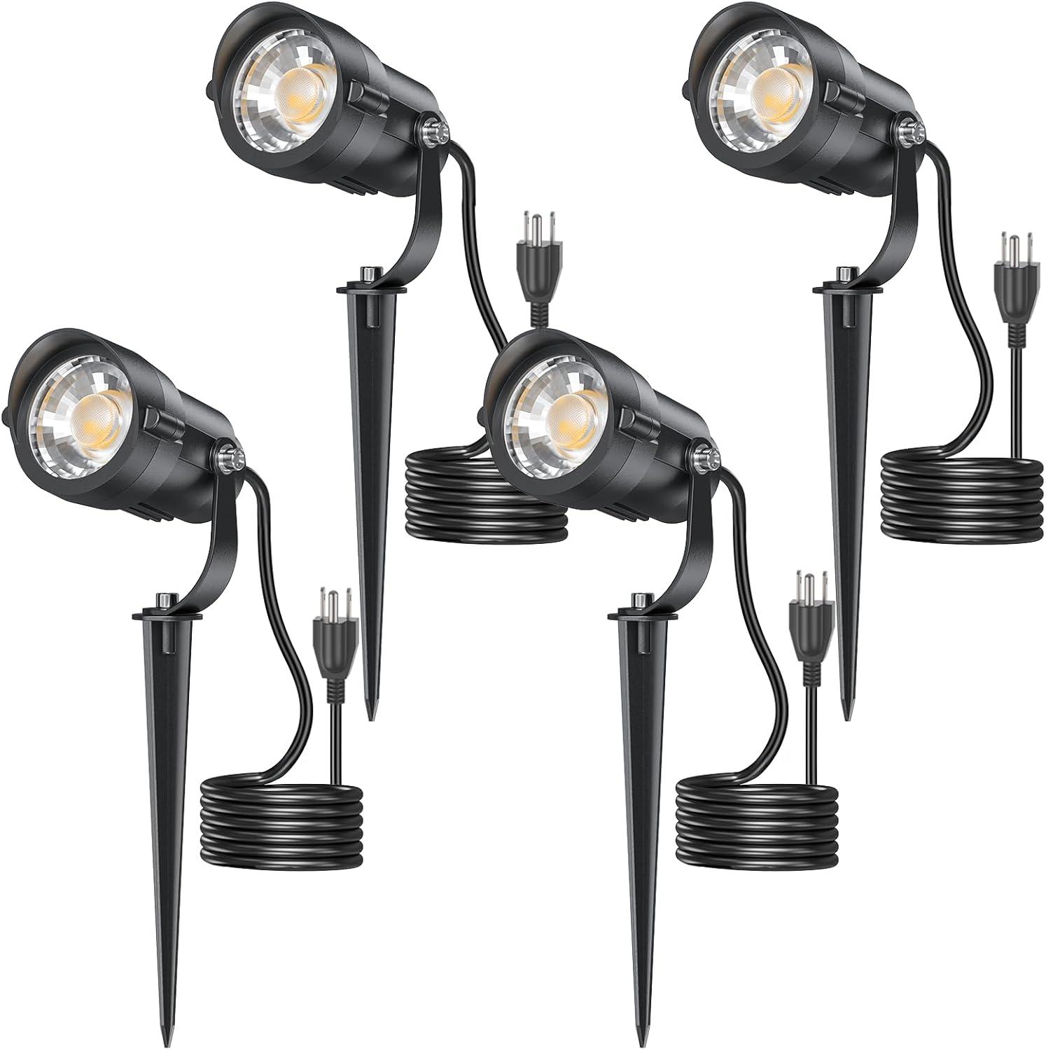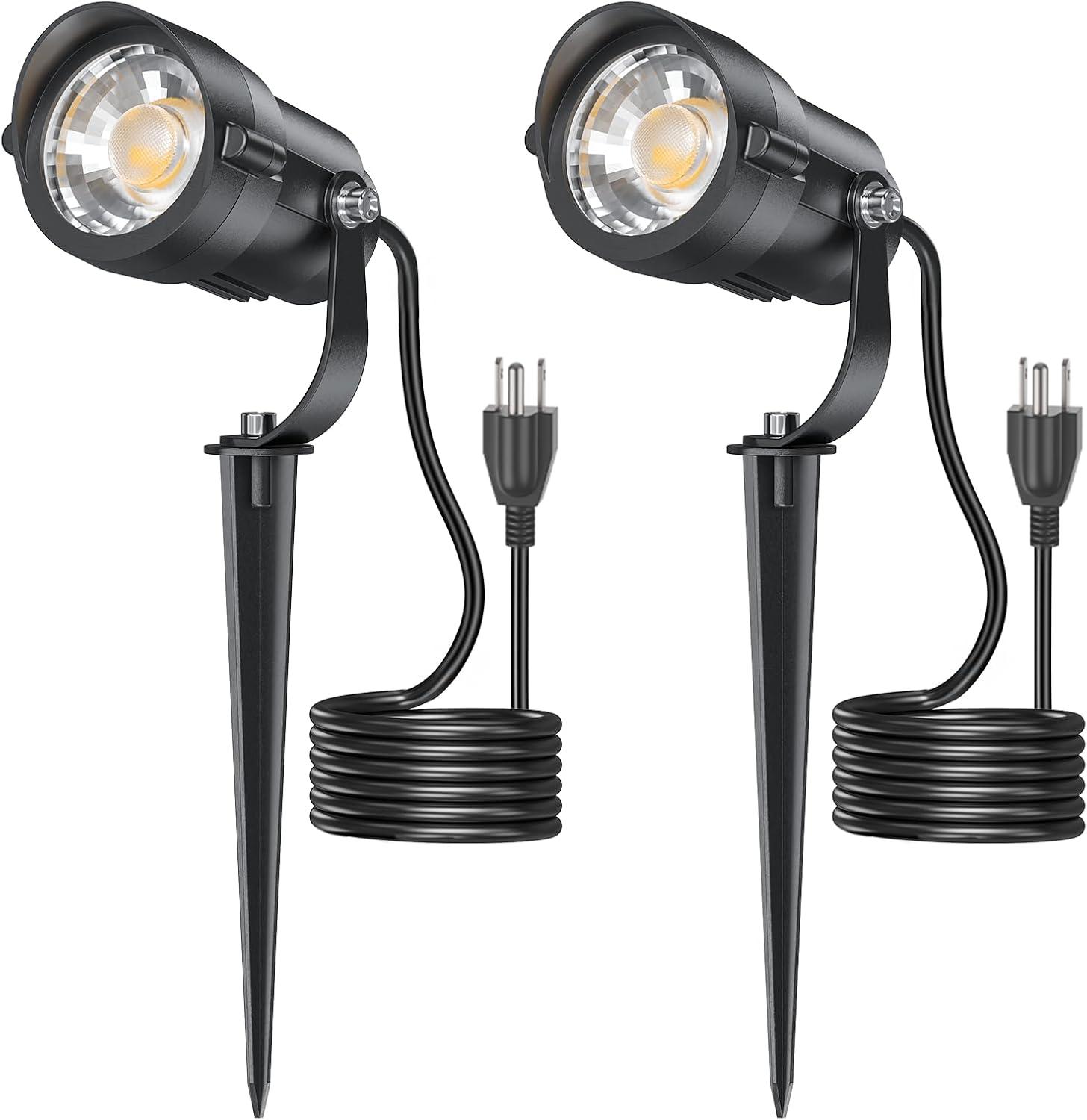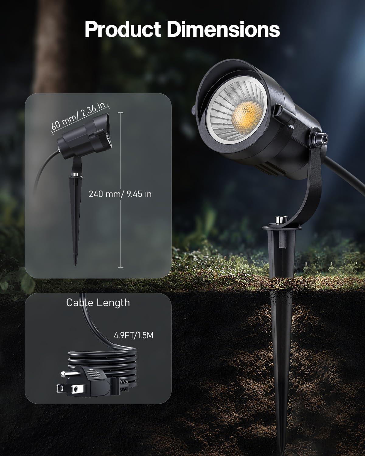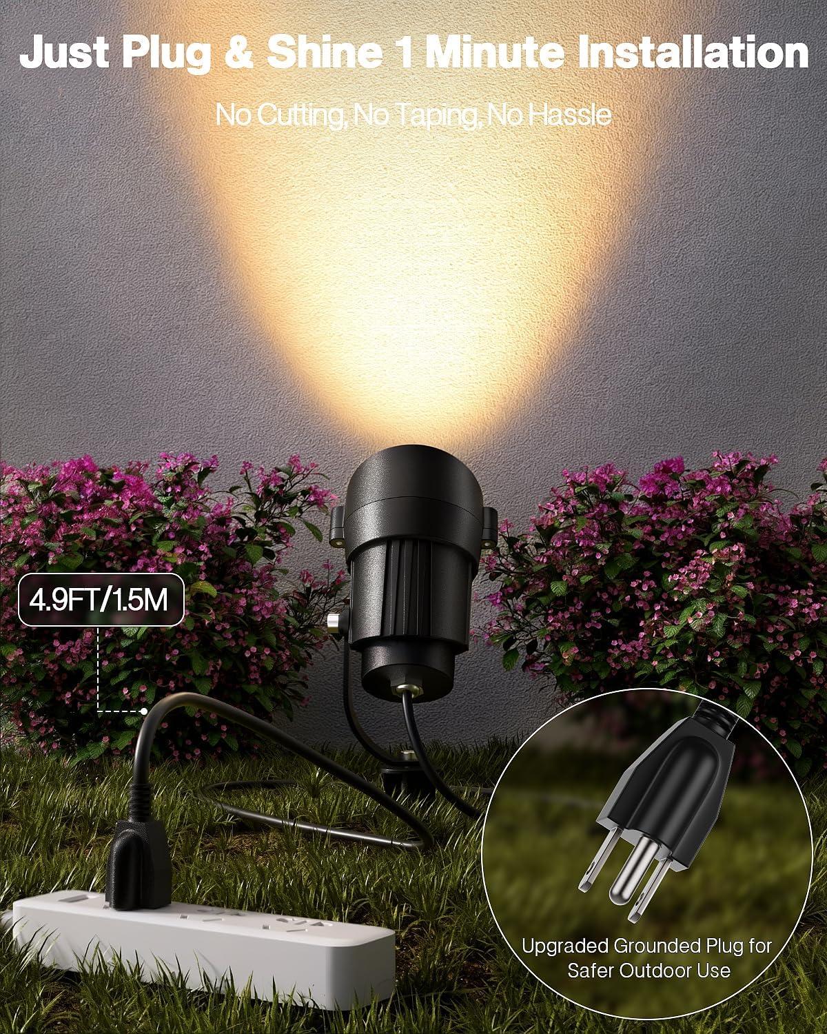 Plug and Go: 4.9FT/1.5M cord with a 3-Plug allows quick set up—no hardwiring required. Install the garden outdoor lights, connect to a waterproof power outlet, adjust the stake, and enjoy instant illumination. A sleek, low-profile design blends seamlessly with any yard decor.