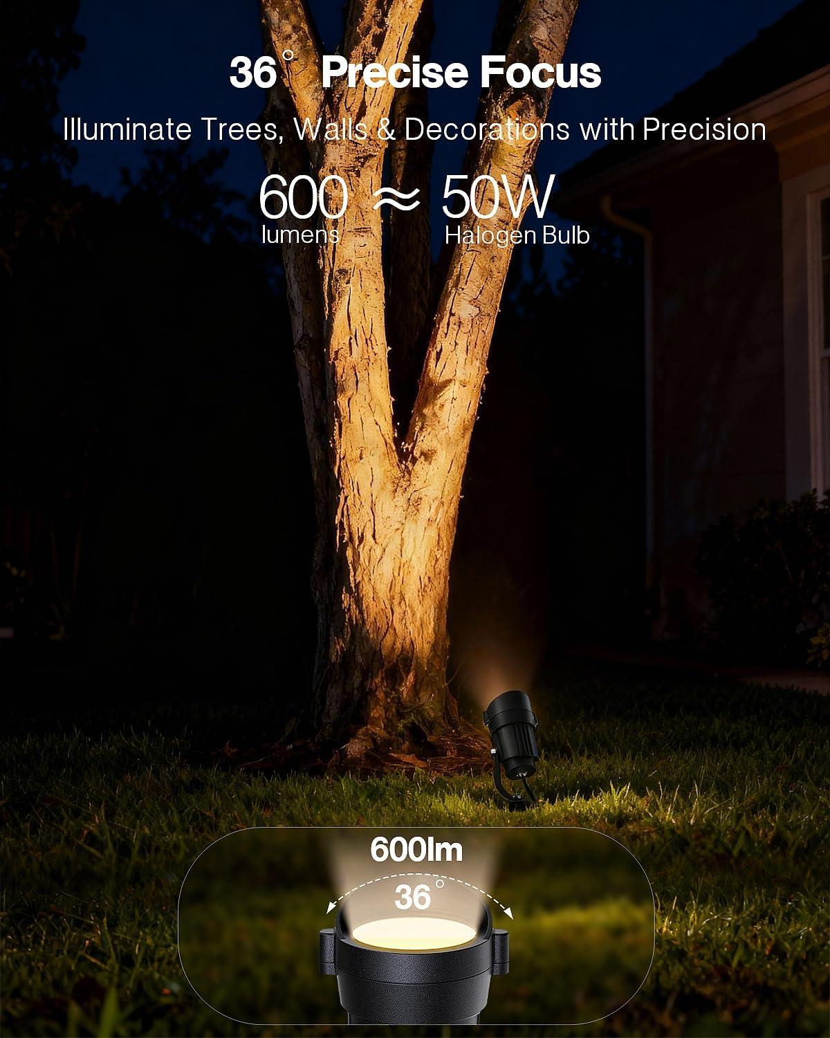 1300LM Ultra-Bright Spot Lights: High power LED with 1300 lumens delivers crisp warm white light (2900K) and a focused 36° beam angle, ideal for illuminating pathways, trees, flags, or architectural features while adding a modern, stylish touch to your outdoor space. Built to last 50,000+ hours for year-round outdoor use.