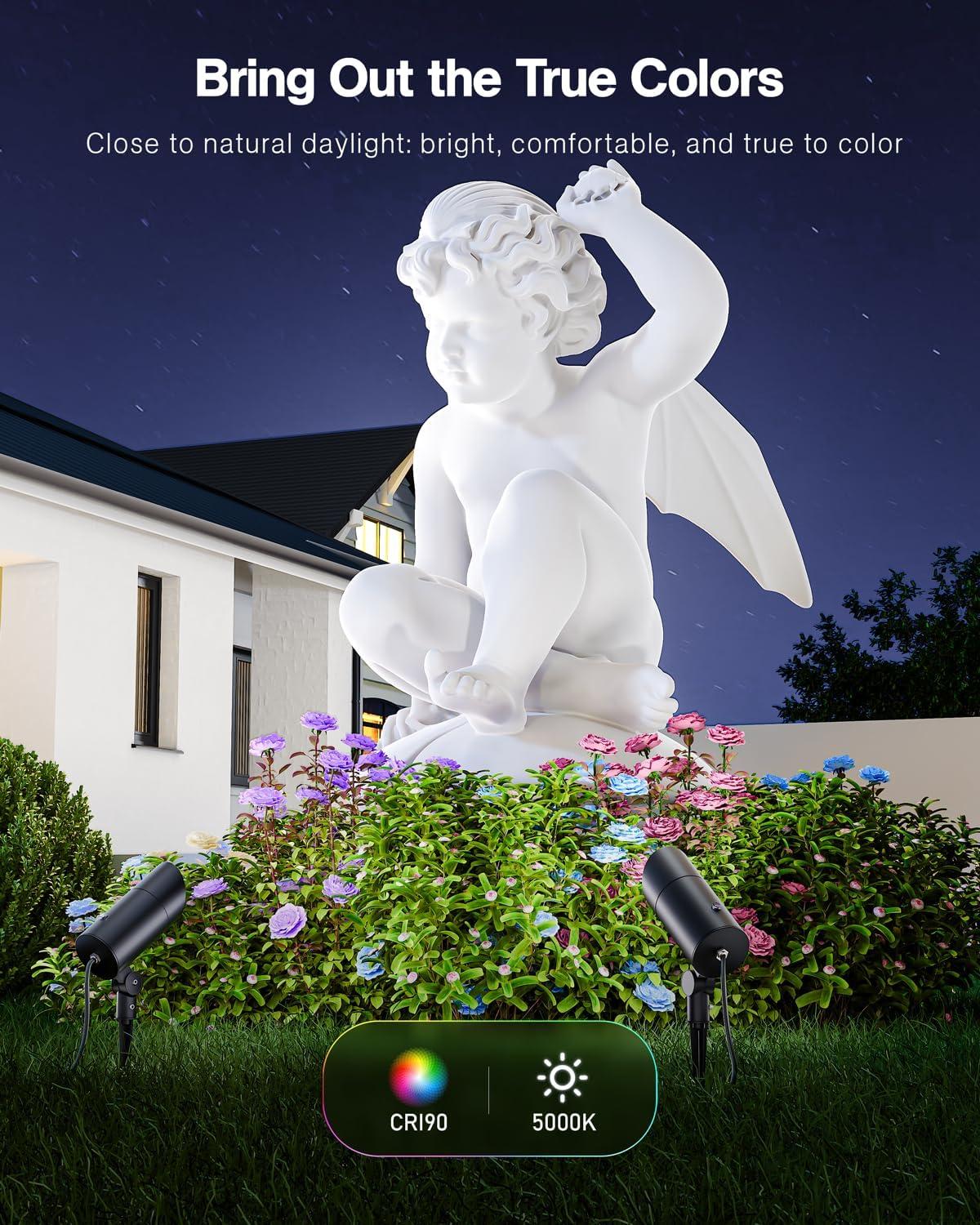 【Ultra-Bright Spot Lights】Featuring 30W LED chips, 5000K daylight, and a high color rendering index (CRI 90), this spotlight provides clear and bright lighting, ensuring every detail is illuminated outdoors. Perfect for lighting up gardens, yards, patios, exterior walls, backyards, and fences and more. This spotlight is equivalent to a 200W halogen light, significantly reducing electricity costs