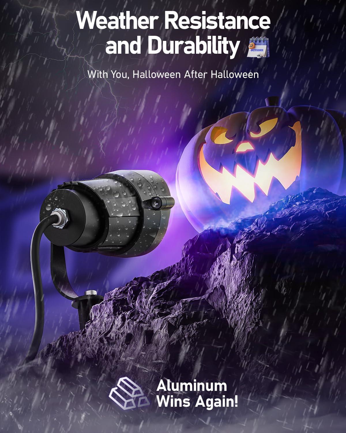 Heavy Duty Metal Housing-Built to Haunt Season After Season! Crafted with heavy duty metal housing for rapid heat dissipation and rust resistance, this halloween black light delivers 50,000 hours of non stop eerie glow. Perfect as durable halloween spot lights outdoor – survive rain, wind, and endless fright nights while making fluorescent skeletons and tombstones pop!
