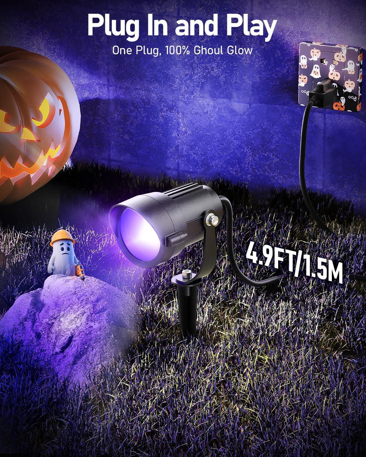 HIBOITEC Halloween Black Light Spotlight Outdoor 12W IP65 Waterproof LED Spot Lights Landscape Lighting with US Plug for Glow Party Body Paint Yard Garden Decorations 4Packs(4 Pack)