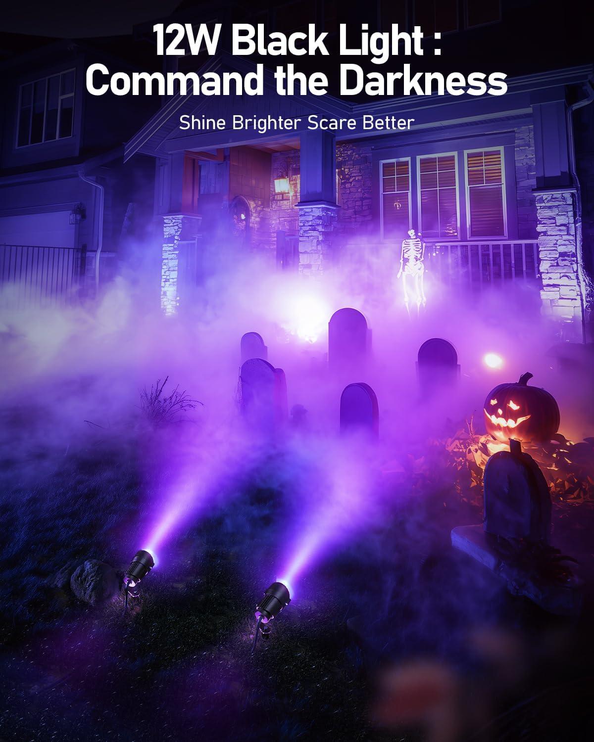 HIBOITEC Halloween Black Light Spotlight Outdoor 12W IP65 Waterproof LED Spot Lights Landscape Lighting with US Plug for Glow Party Body Paint Yard Garden Decorations 4Packs(2 Pack)