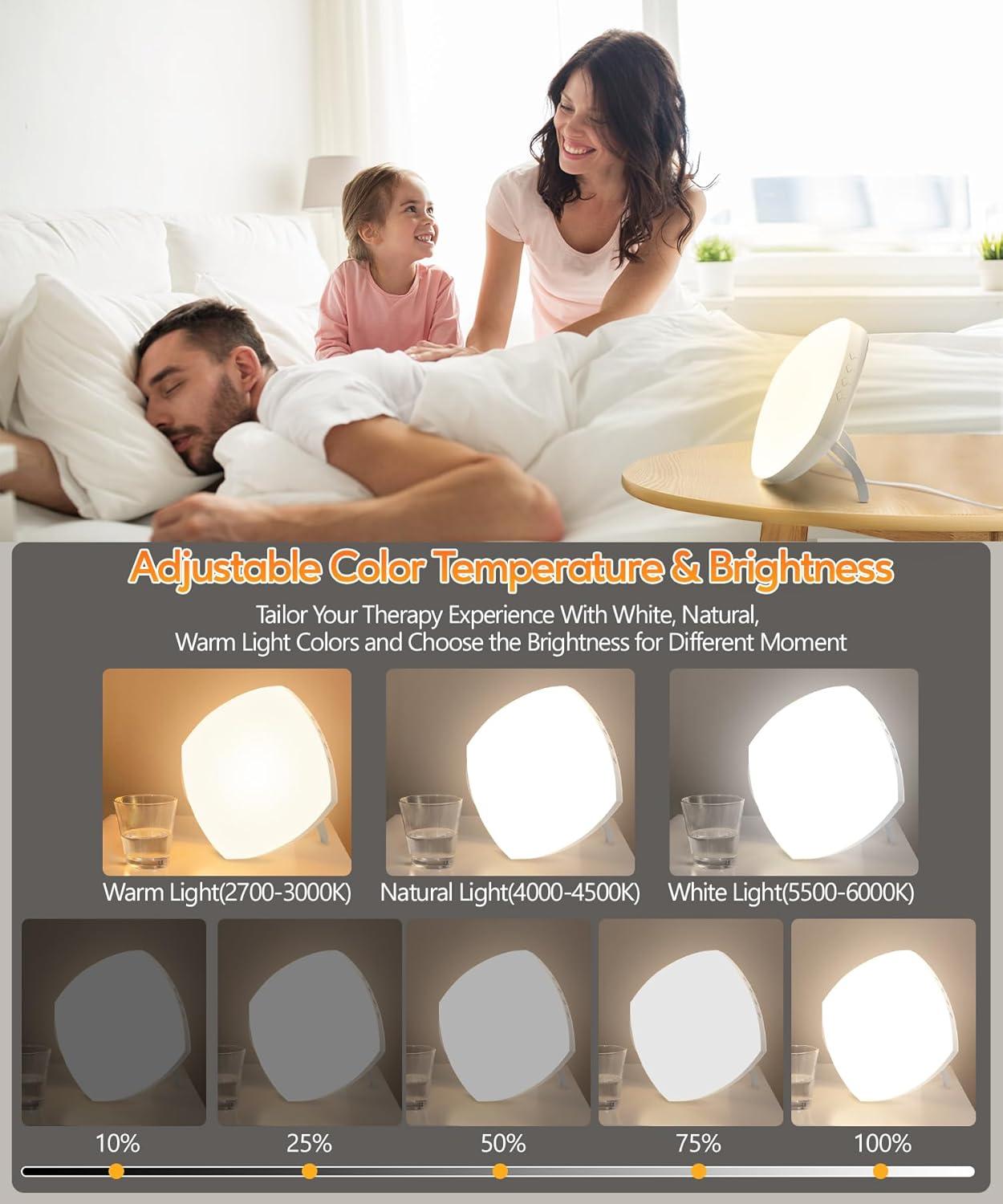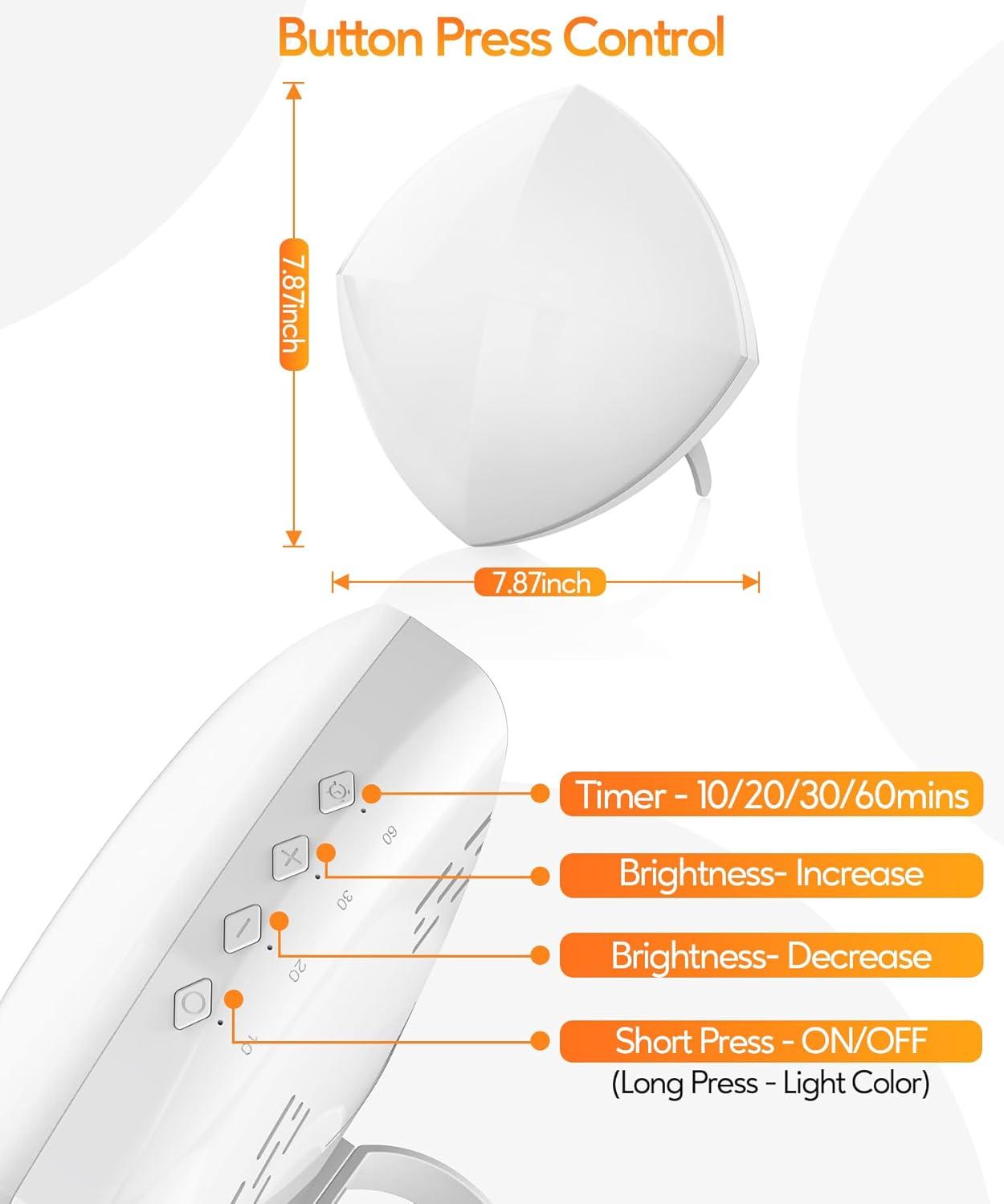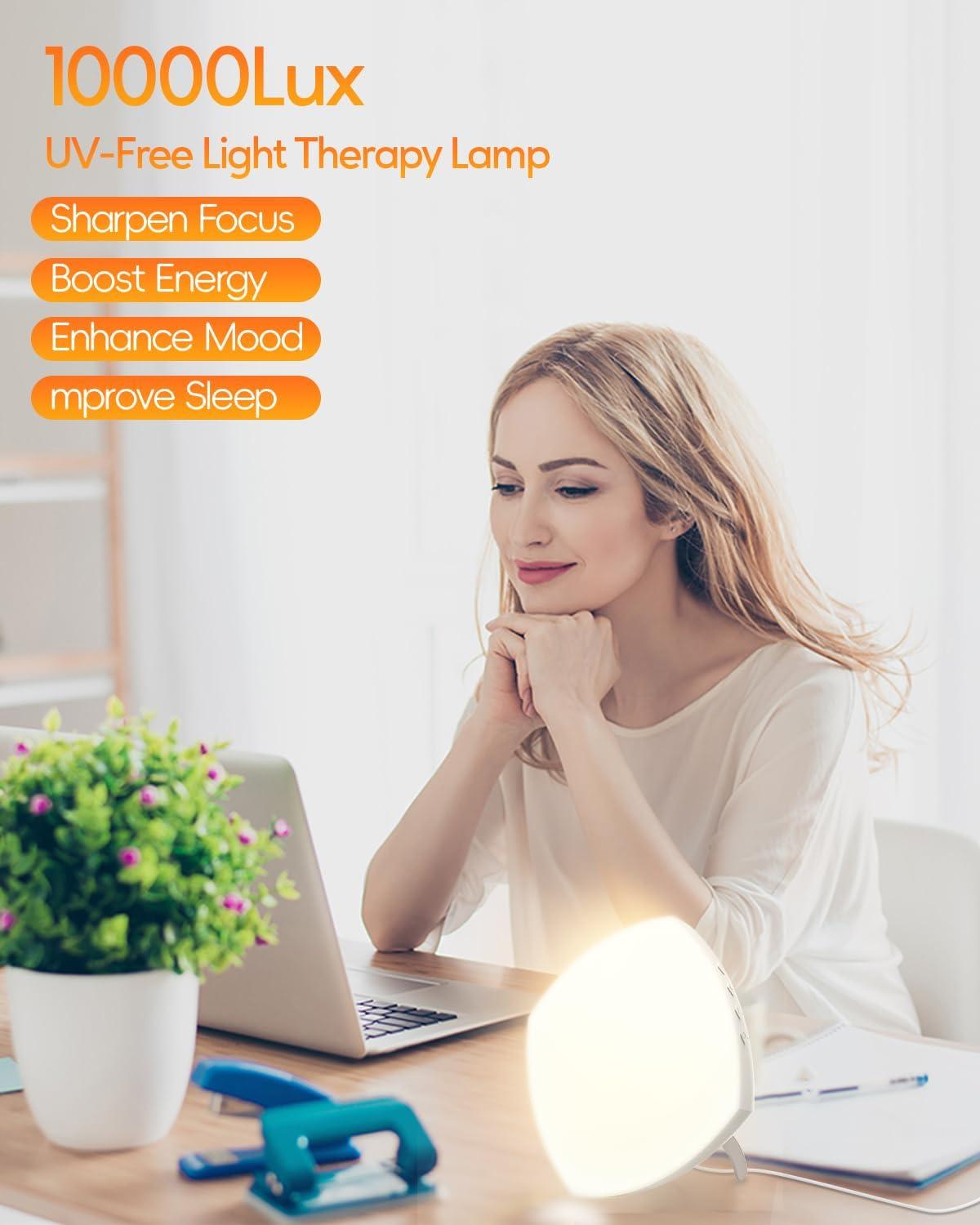 10,000 LUX UV-FREE THERAPY LIGHT: This light therapy lamp mimics natural sunlight, providing 10,000 lux brightness. Using UV-free LED technology, this lamp provides full brightness, no flicker, no glare, and no hot spots, making it safe and friendly for your eyes