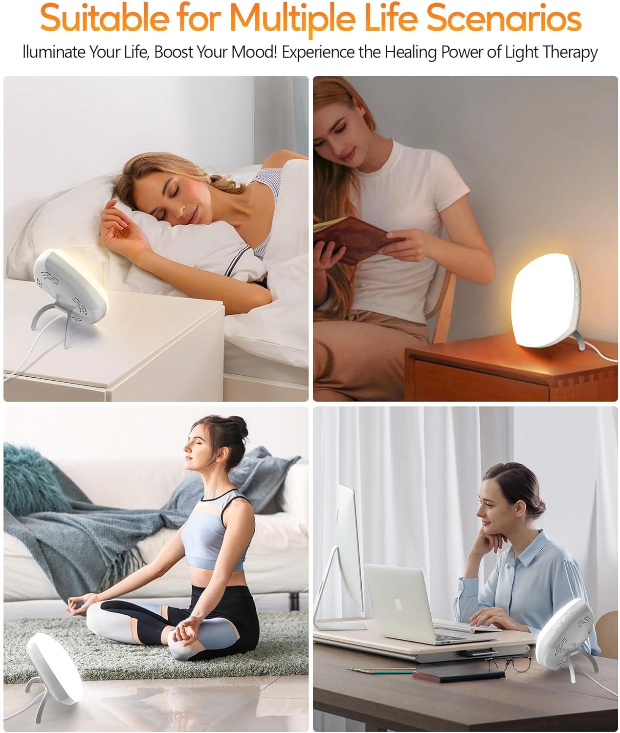 THERAPY LAMP FOR VARIOUS LIFE SCENARIOS: This light therapy lamp can be used in various life scenarios, such as practicing yoga, reading before bedtime, in the morning, and during work