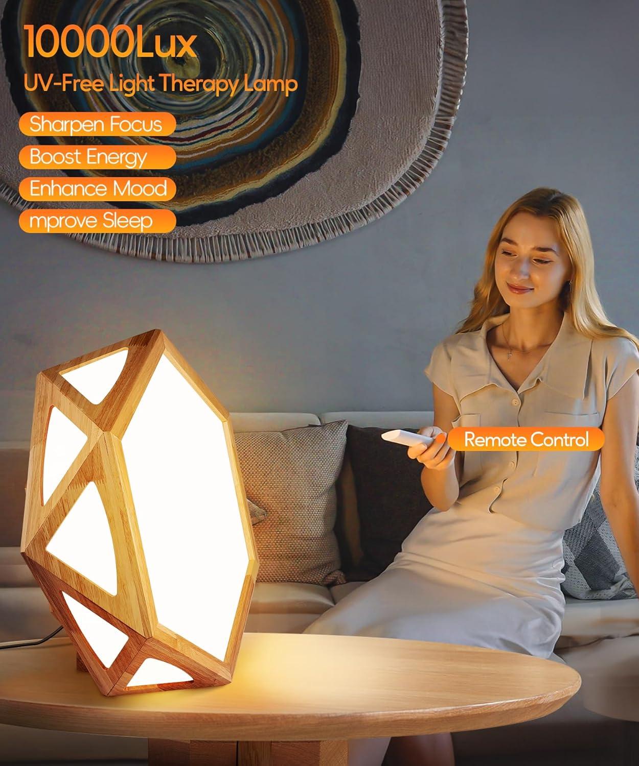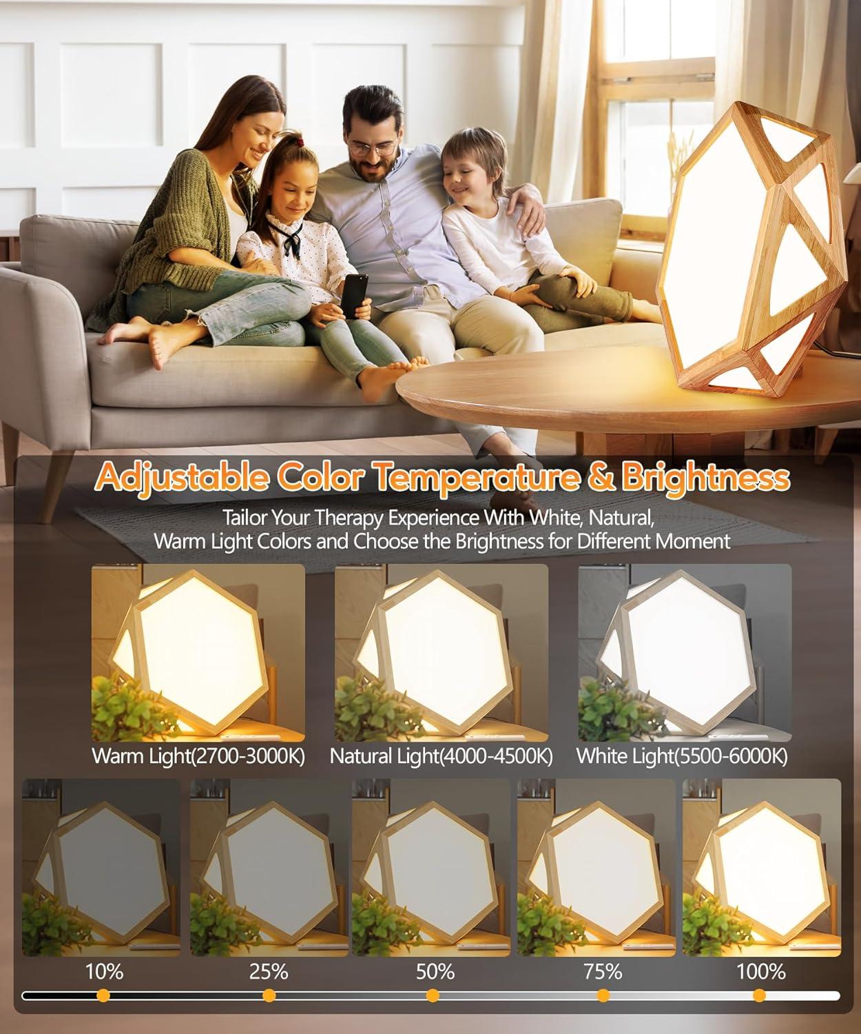 【10,000 Lux UV-Free Therapy Light】: This light therapy lamp mimics natural sunlight, providing 10,000 lux brightness to help increase energy, improve mood, sleep, and enhance focus. Using UV-free LED technology, this lamp provides full brightness, no flicker, no glare, and no hot spots, making it safe and friendly for your eyes.