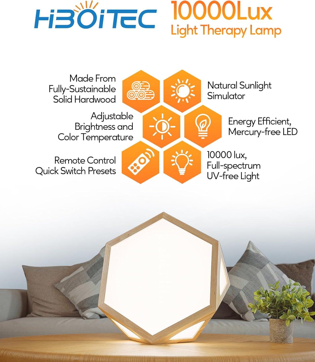 3 COLOR TEMPERATURES & 5 LEVELS OF BRIGHTNESS: HIBOITEC Light therapy lamp provides 3 color temperature modes from 2800K to 5700K, namely warm light, natural light, and white light, which can be used as work, daily reading, writing, sleep lighting, to meet all different 5 level adjustable brightness from 10% to 100%, you can adjust the most comfortable light according to distance, environment and light sensitivity