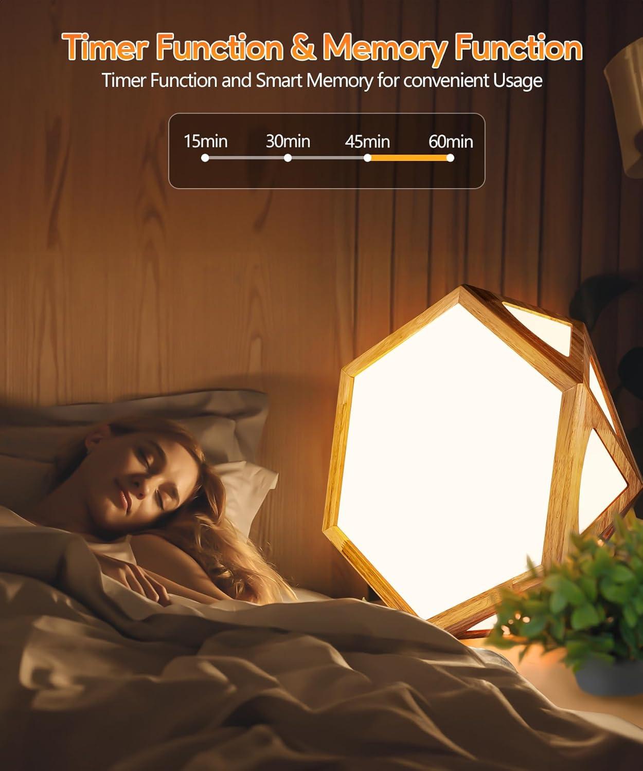4 TIMER SETTINGS AND SMART MEMORY FUNCTION: This sun lamp has 4 optional timers (15/30/45/60 minutes). After the timer is completed, the light will automatically turn off, making it ideal for bedtime readers to set the right lighting time for their needs. Additionally, the built-in intelligent memory function keeps the last best mode by default when the light is turned on the next time