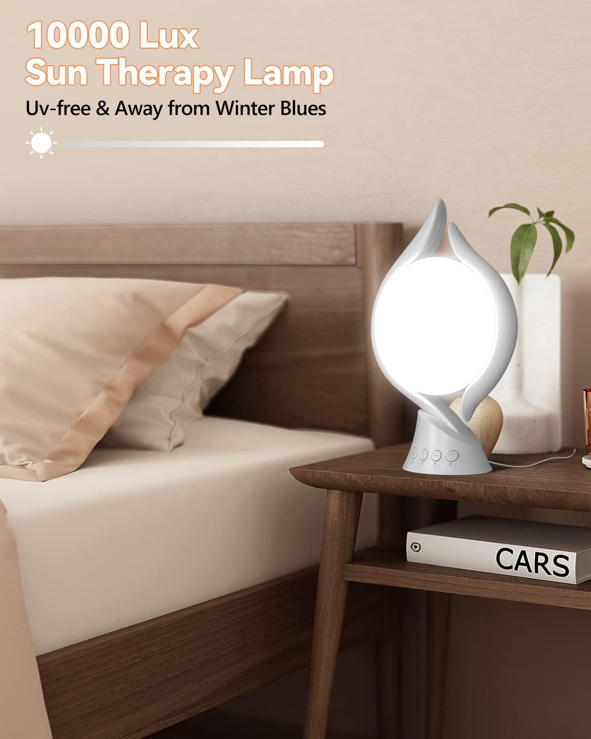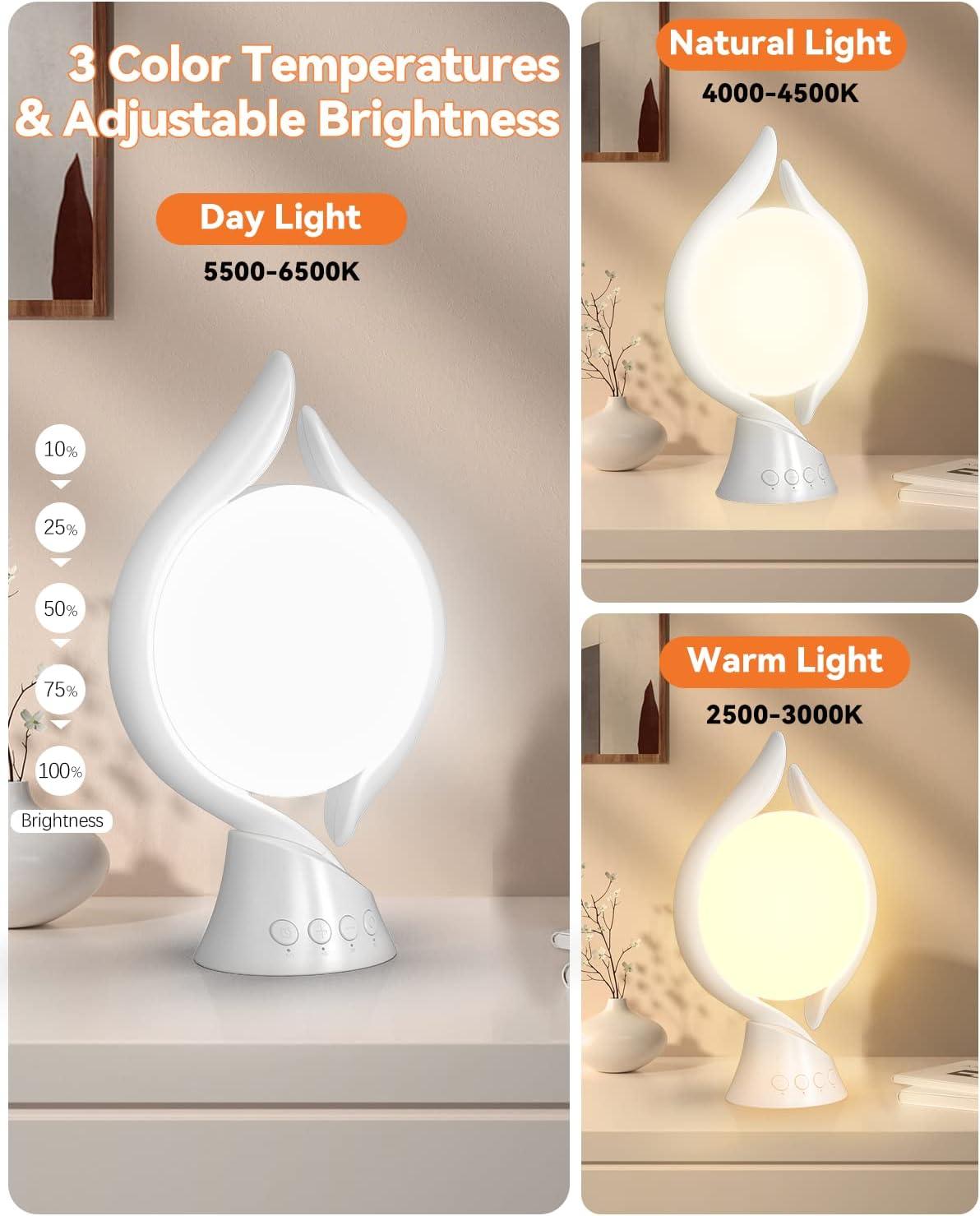 HIBOITEC Light Therapy Lamp, UV-Free 10000 Lux Therapy Light, LED Happy Mood Lamps with 5 Adjustable Brightness and Timer & Memory Function, 3 Color Temperature, Unique Art Design for a Happy Life(White)