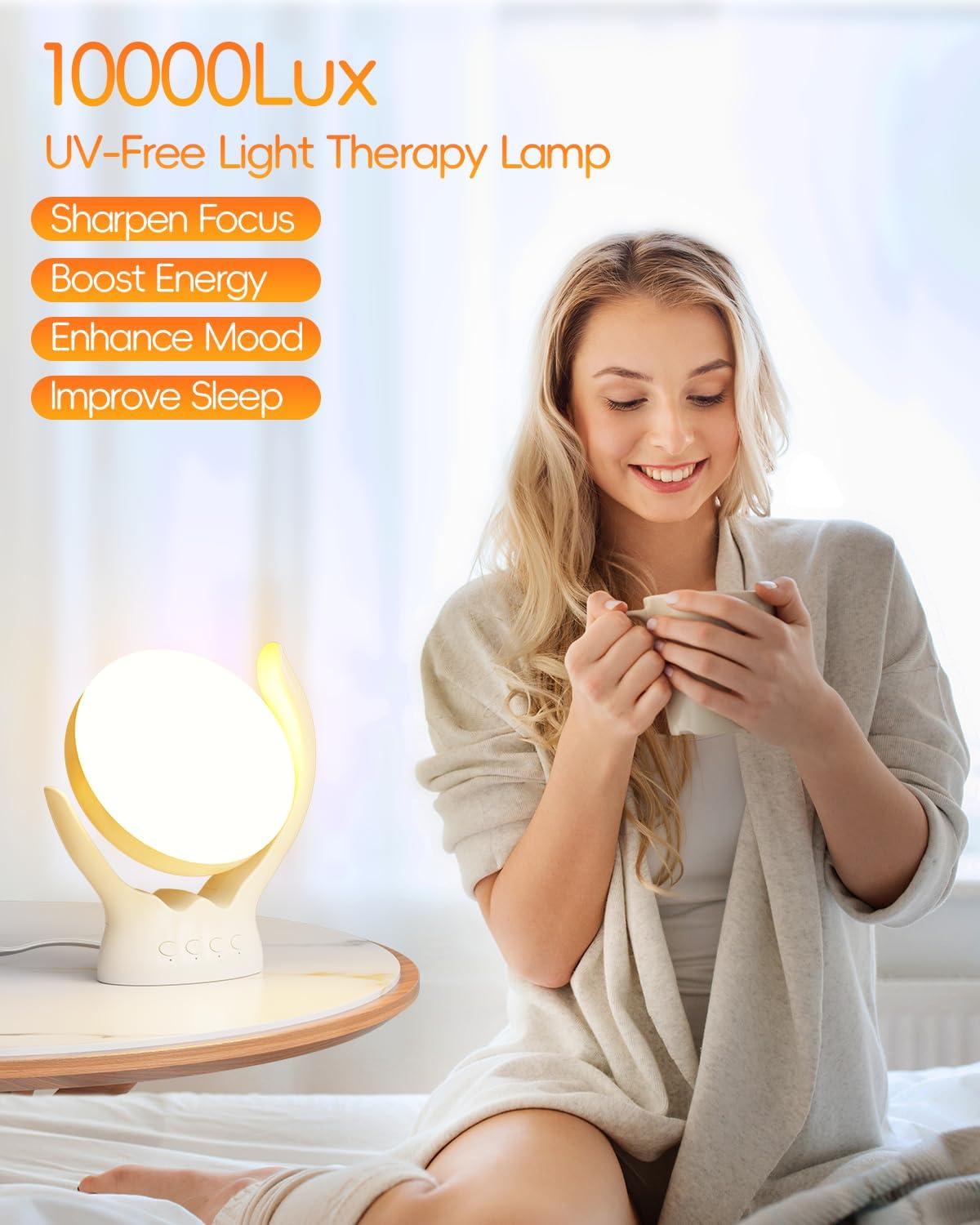 【10,000 Lux UV-Free Therapy Light】: This light therapy lamp mimics natural sunlight, providing 10,000 lux brightness to help increase energy, improve mood, sleep, and enhance focus. Using UV-free LED technology, this lamp provides full brightness, no flicker, no glare, and no hot spots, making it safe and friendly for your eyes.