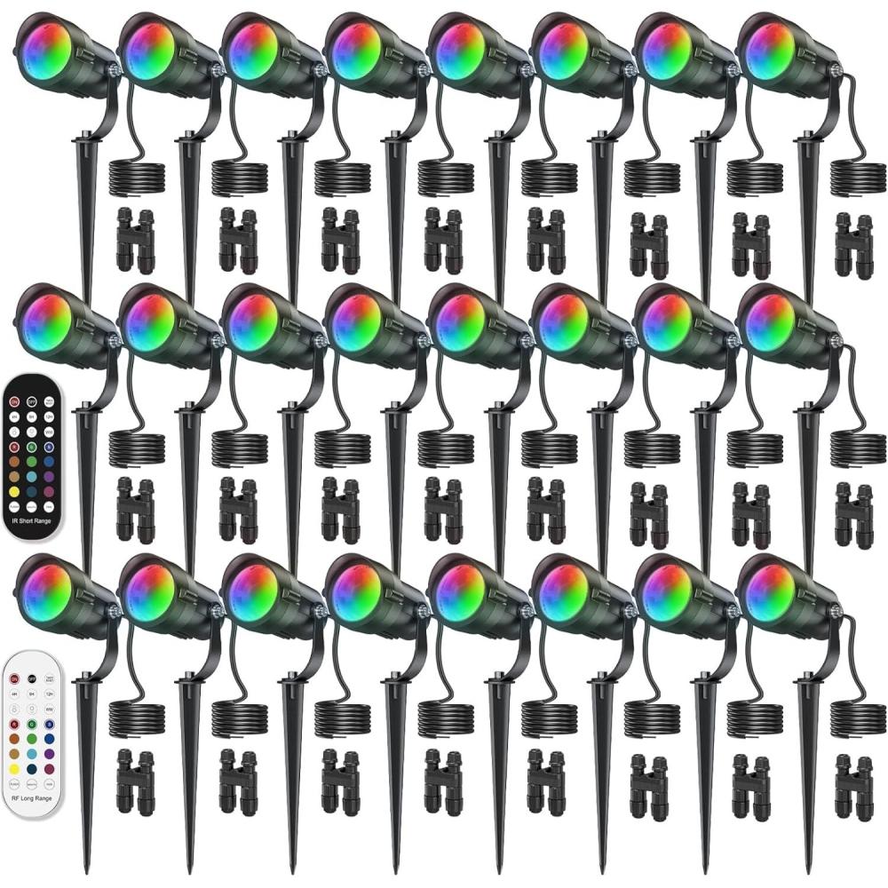 HIBOITEC RGBW Low Voltage Landscape Lighting 10Pack 12W with Remote Connectors Spotlights Landscape Lights 12-24V AC/DC Waterproof for House Yard Trees Outdoor Christmas(Transformers NOT Included)(24 Pack)