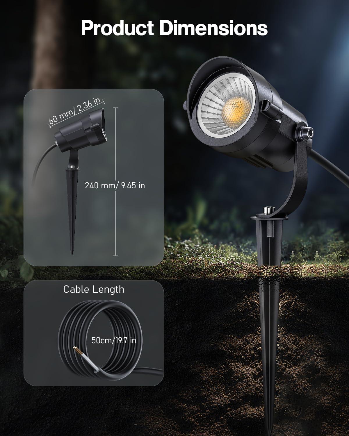 SAFETY & DURABLE – 12-24V AC/DC low voltage design, the low voltage landscape lighting are FCC, ETL and UL listed, safe to use around kids and pets. The low voltage landscape lights is made of metal aluminium housing, and both outdoor led spotlight have IP65 waterproof rating, both of which can withstand storms and other harsh weather, suitable for long time outdoor use.